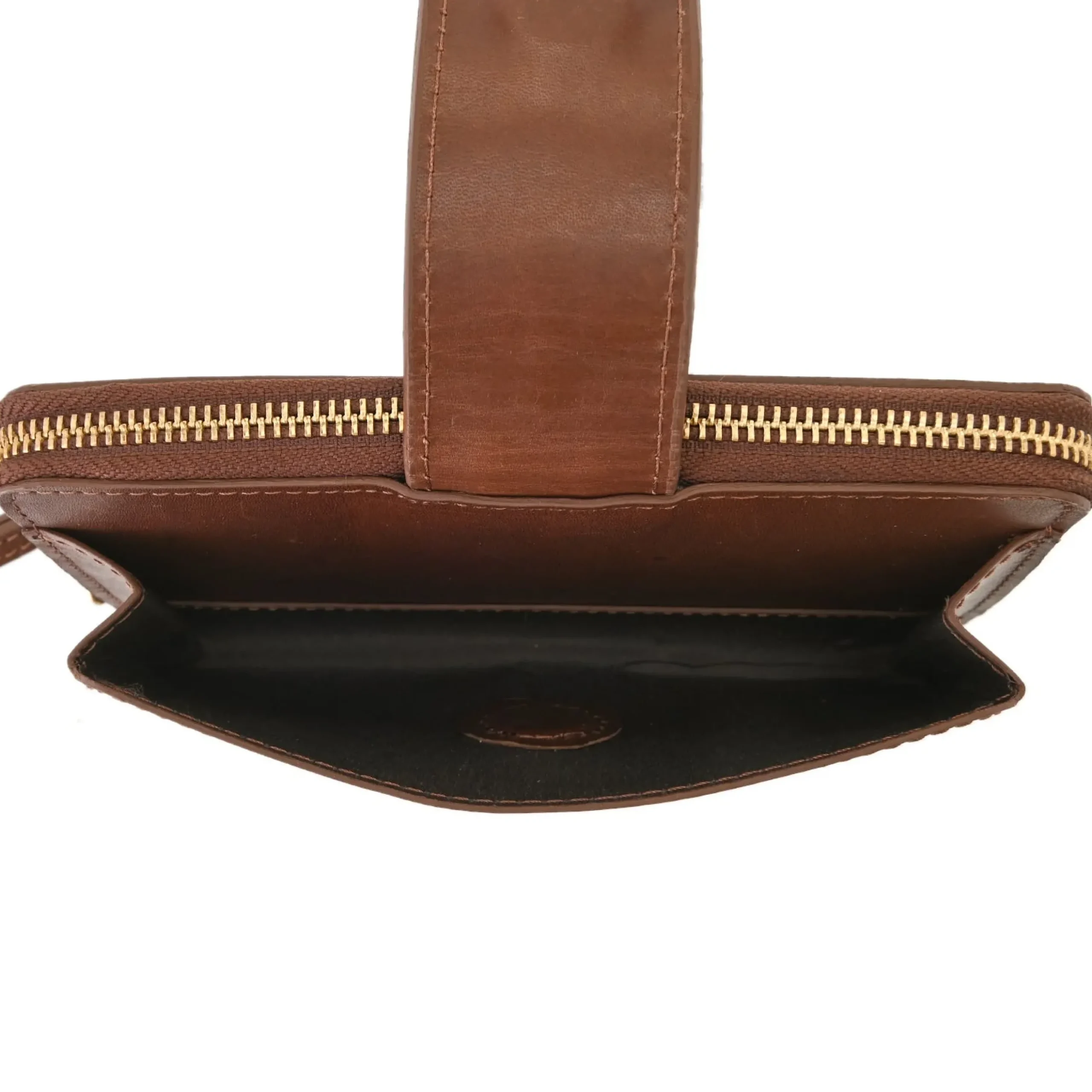 Equestrian Hardware Accents. Exterior Cell Phone, Storage Pocket With Magnetic Snap Closure. Zip Around Clam Shell Opening. Interior Twelve Card Pockets And Two Cash Pockets. Wristlet Strap. Brass Hardware Imported. 7.5″ W 4.75″ H 1.25″ D